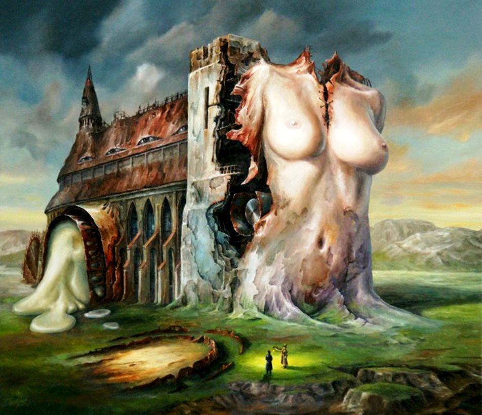 e seios femininos a brilhar como dois olhos.